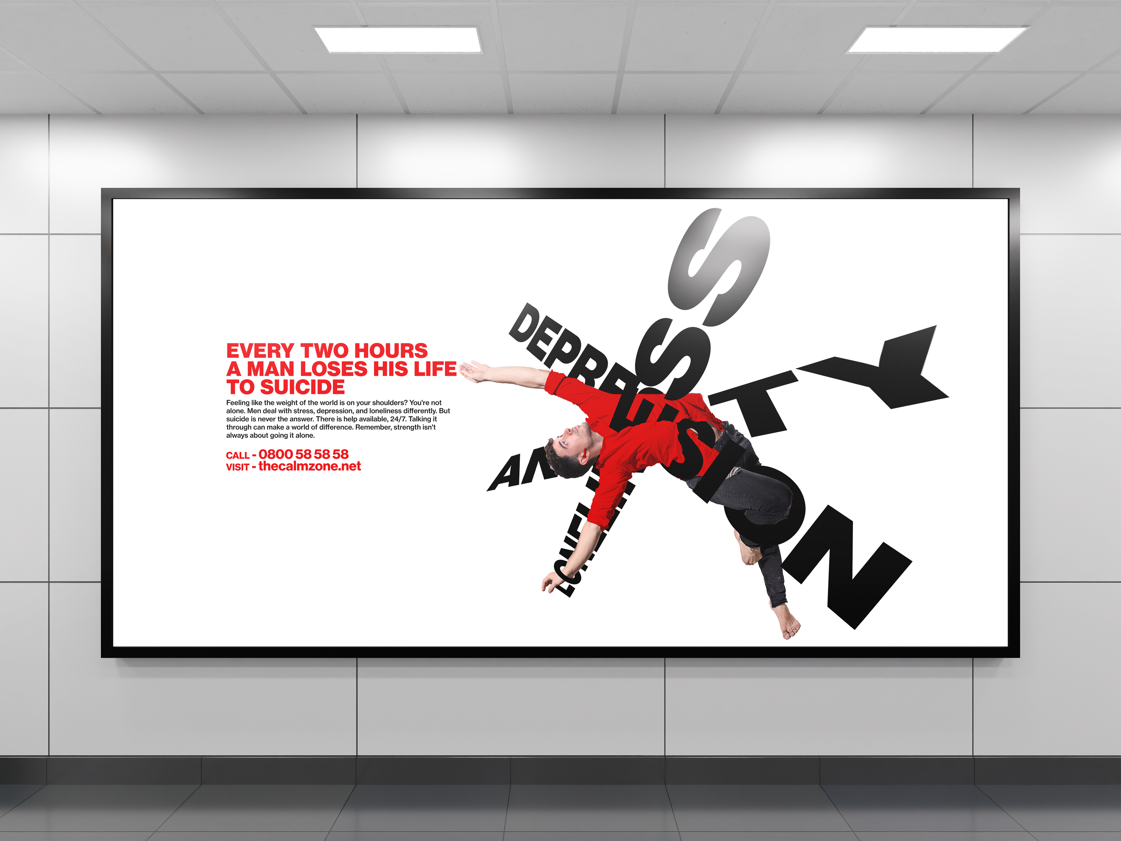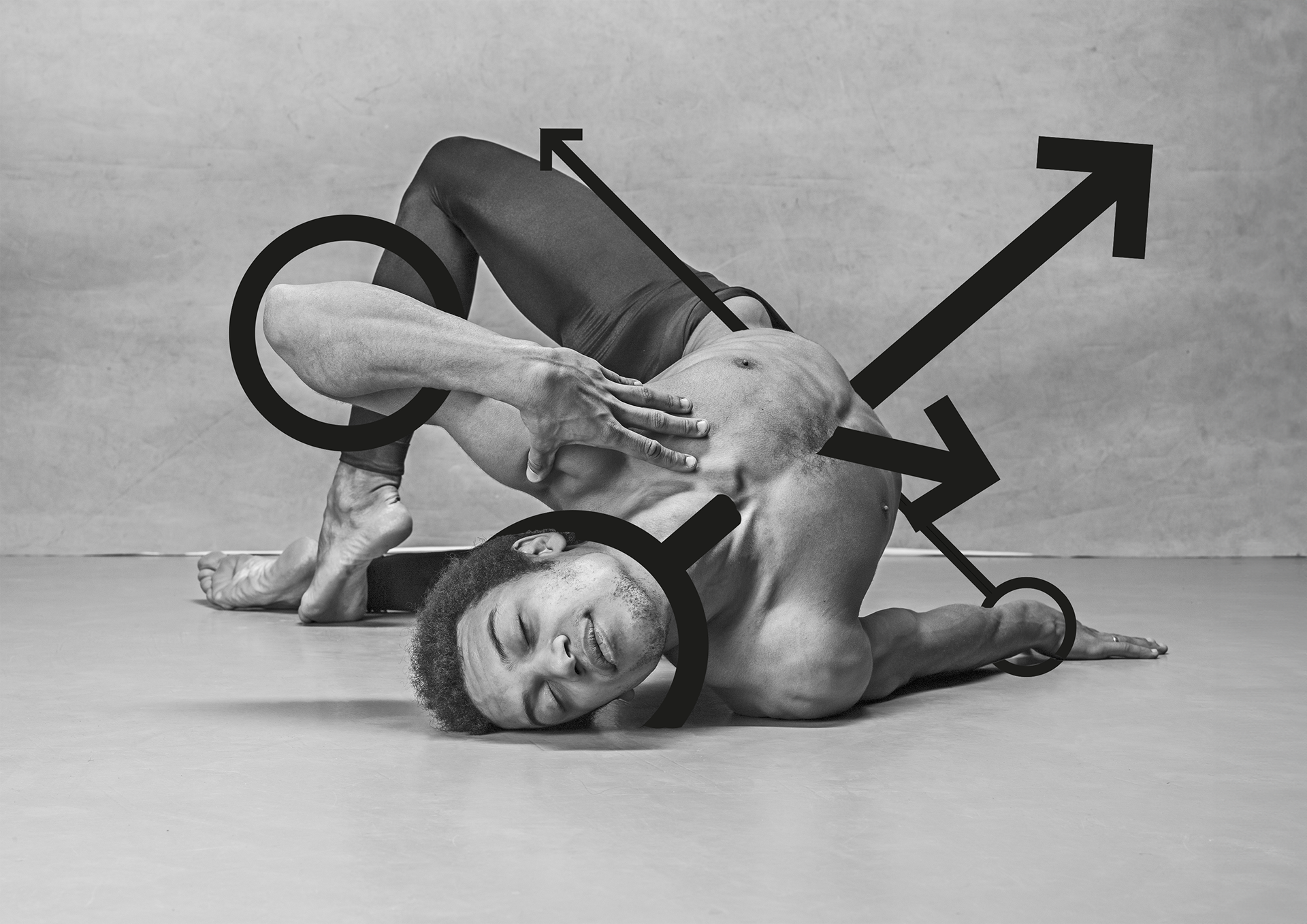 The imagery of male dancers was chosen to contrast the joyous expression of their faces and bodies with the words piercing them, this is also symbolic of the societal expectations for men to not express their struggles.